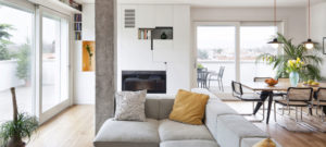 Betonowe słupy w mieszkaniu dodają odrobinę przemysłowej elegancji nie ujmując przy tym jego przytulnemu i jasnemu klimatowi.